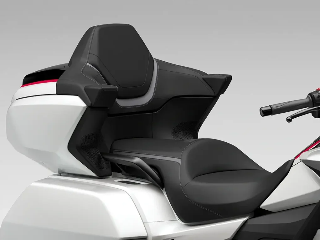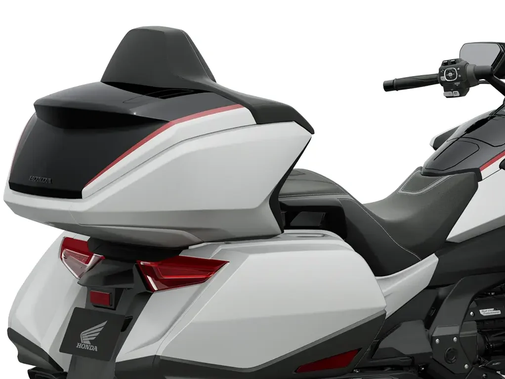 O bagageiro da Honda Gold Wing central de 61 litros, juntamente com os bagageiros laterais, oferece uma capacidade total de 121 litros, permitindo levar tudo o que você precisa para suas aventuras.