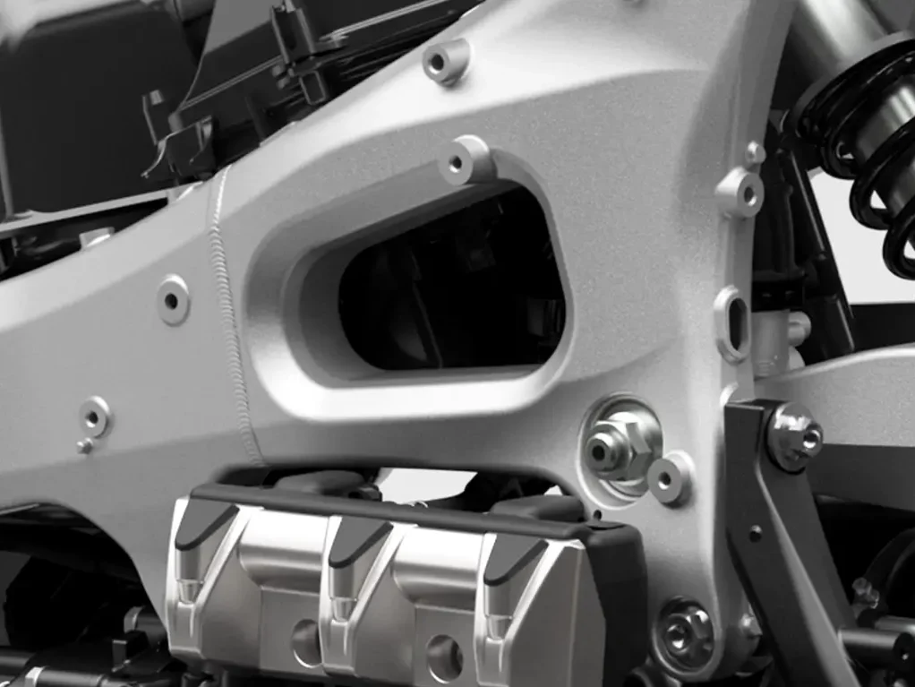 Chassi leve e robusto que, combinado com o motor, permite uma posição de pilotagem mais à frente, proporcionando uma experiência de condução mais dinâmica e prazerosa.