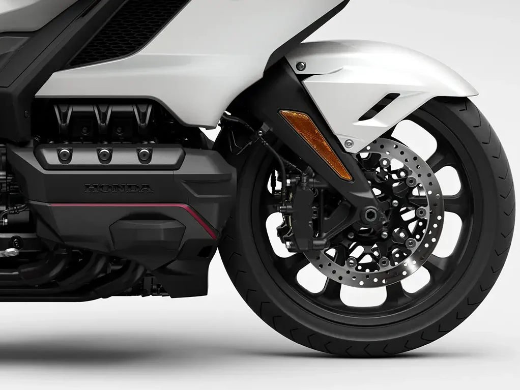 A Gold Wing Tour é equipada com tecnologias de segurança de ponta. O sistema de airbag de fábrica é uma inovação exclusiva, enquanto os freios ABS combinados e o Emergency Stop Signal (ESS) proporcionam uma frenagem segura e precisa.