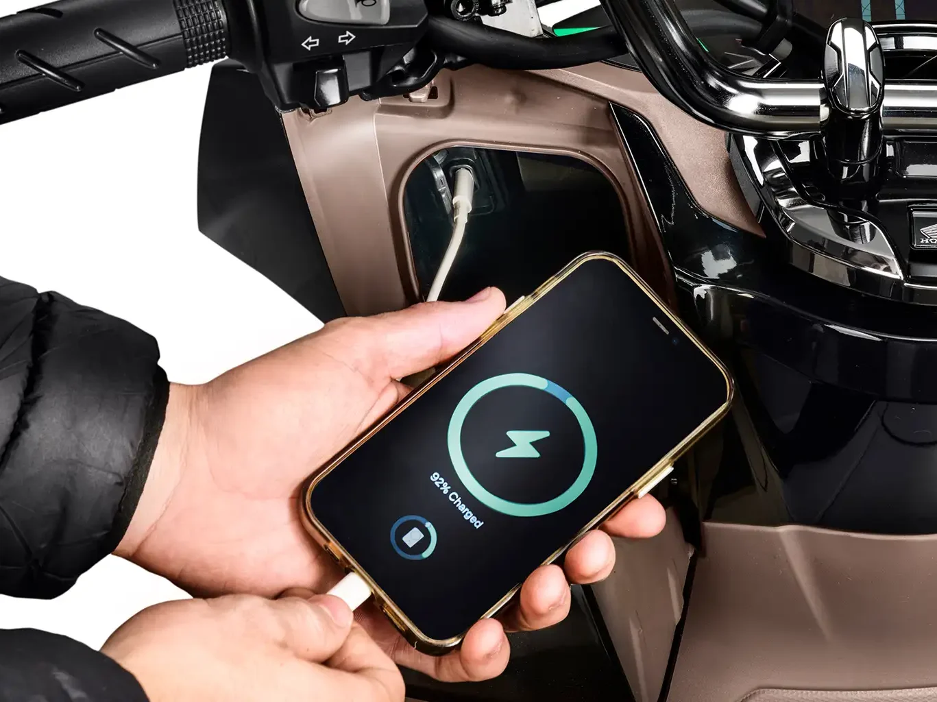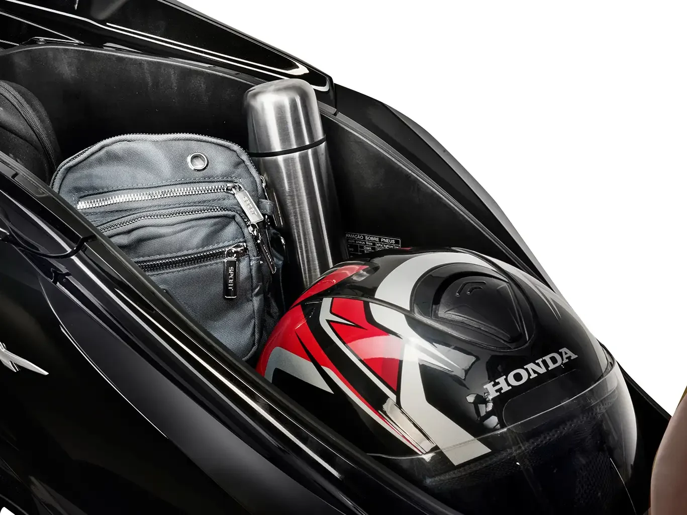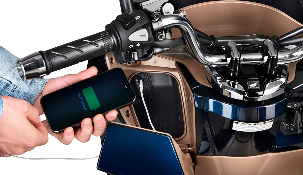 A PCX é conectada ao seu estilo de vida. Por isso, no porta-luvas da scooter há uma nova entrada USB-C para carregar o seu celular.