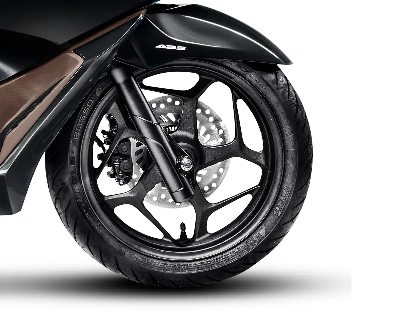 Garantindo mais segurança e controle durante a pilotagem, os modelos PCX DLX e PCX ABS possuem sistema de freios ABS, que evita o travamento da roda dianteira no caso de frenagens bruscas. Já a PCX CBS conta com sistema CBS, que distribui a frenagem entre as rodas de maneira equilibrada e inteligente.