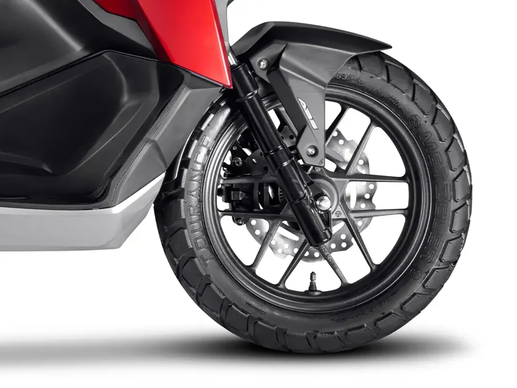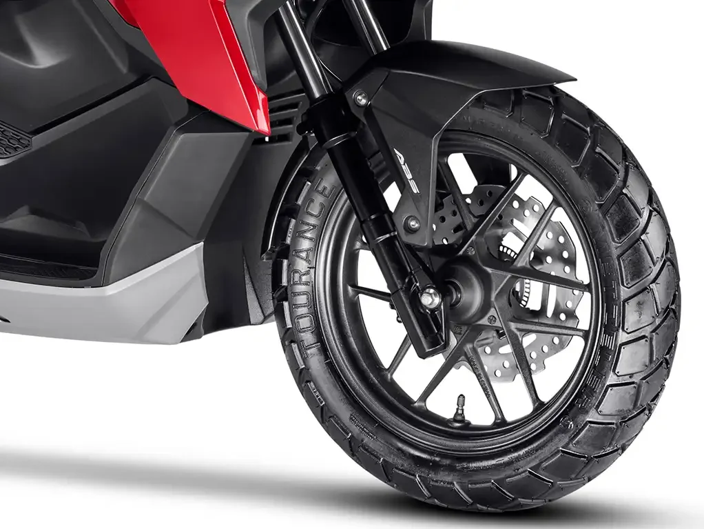 Com 14” na roda dianteira e 13” na roda traseira, os pneus da Honda ADV são mais largos e de uso misto, o que proporciona agilidade, estabilidade e segurança mesmo em terrenos irregulares.