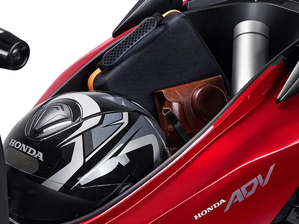 Prático e funcional, o porta-objetos da Honda ADV é perfeito para guardar seu capacete ou outros pertences. O espaço sob o assento confere comodidade e conveniência para o seu dia a dia.