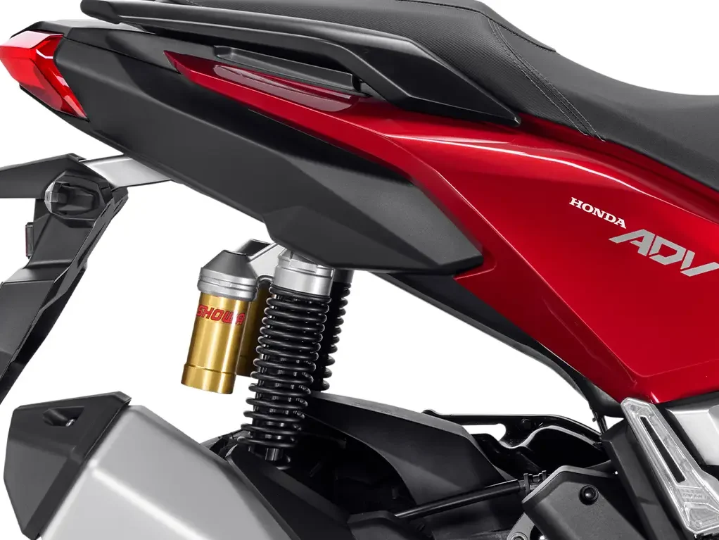 Inovadora e aventureira, a Honda ADV é a primeira scooter da categoria com suspensão Showa de longo curso. Com mola progressiva de 3 estágios e amortecedor com duplo reservatório externo, ela garante conforto e melhor desempenho para o piloto, mesmo em vias esburacadas e irregulares.