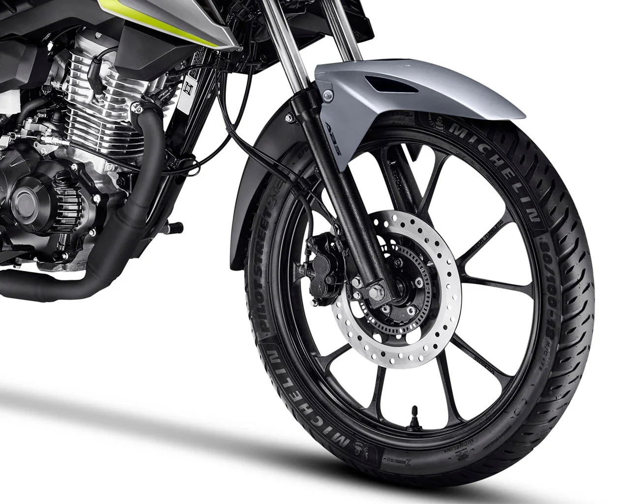 O freio a disco na roda dianteira da CG 160 Start oferece melhor controle em condições adversas e precisão de frenagem para o piloto.