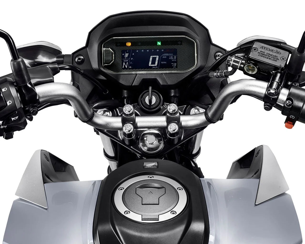 Moderno e funcional, o painel digital com fundo blackout oferece ótima visibilidade, além de indicador de marchas e indicador de consumo instantâneo.
