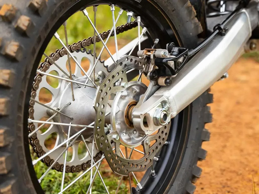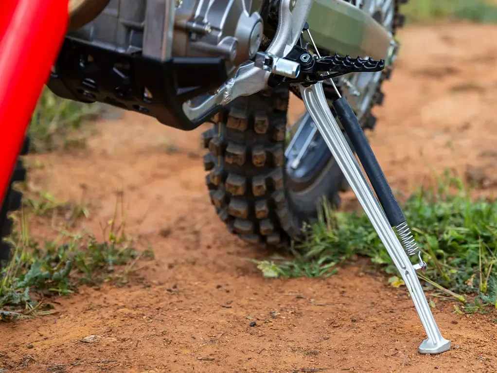 Desenvolvida para entregar o mais alto desempenho, a nova moto CRF 250 RX possui apoio lateral de alumínio forjado, proporcionando mais leveza, estabilidade e durabilidade ao modelo.