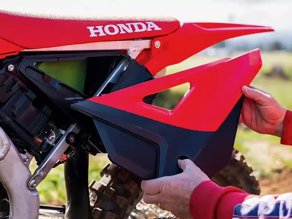 As melhorias no fluxo de ar da nova linha CRF 250 otimizam a entrada de ar no motor, melhorando a aceleração.