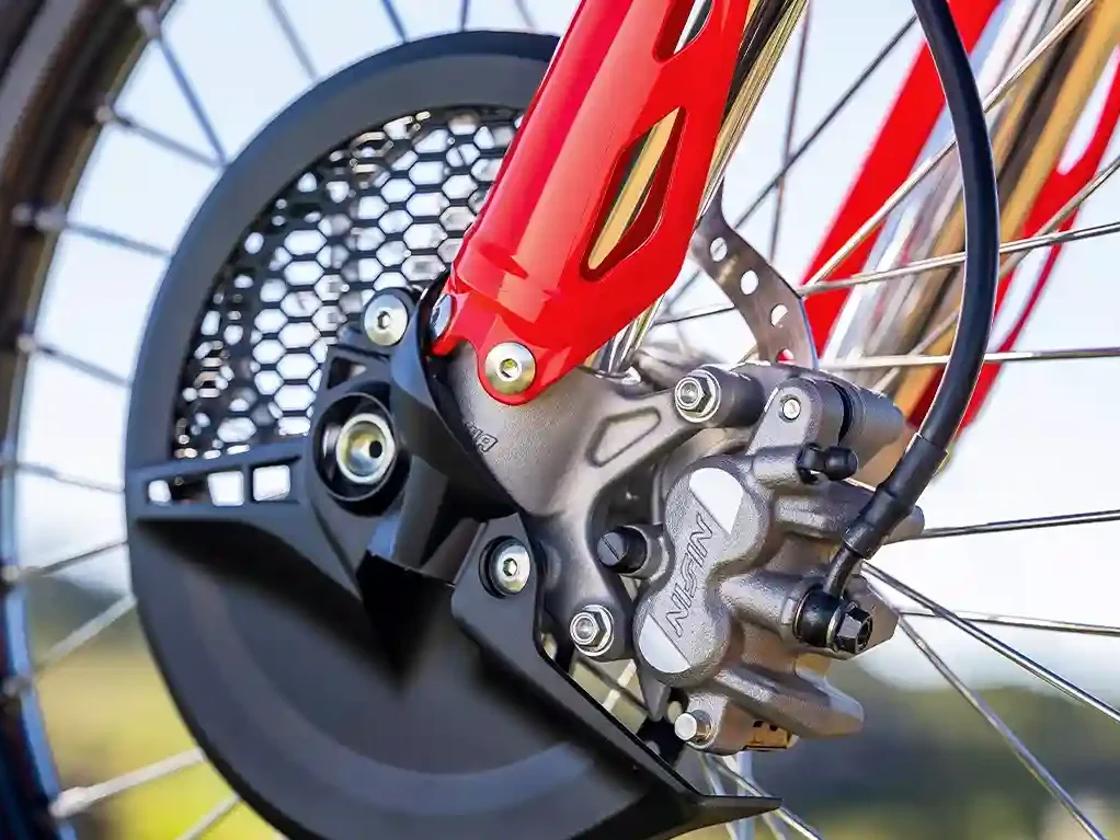 Direto das motos de competição, as novas pinças dianteiras da CRF 250 garantem frenagens seguras mesmo com temperaturas elevadas devido ao uso intenso.