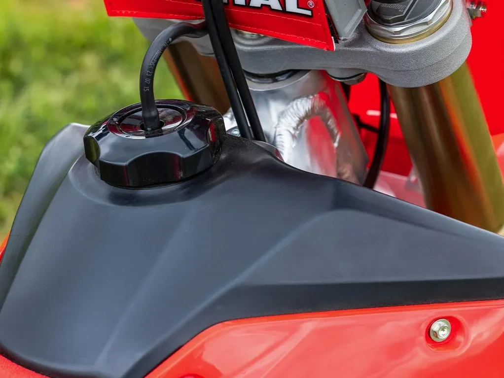 A nova Honda CRF 250RX conta com um tanque de combustível de plástico de 8 litros, o que proporciona mais autonomia e resistência em casos de grande impacto.