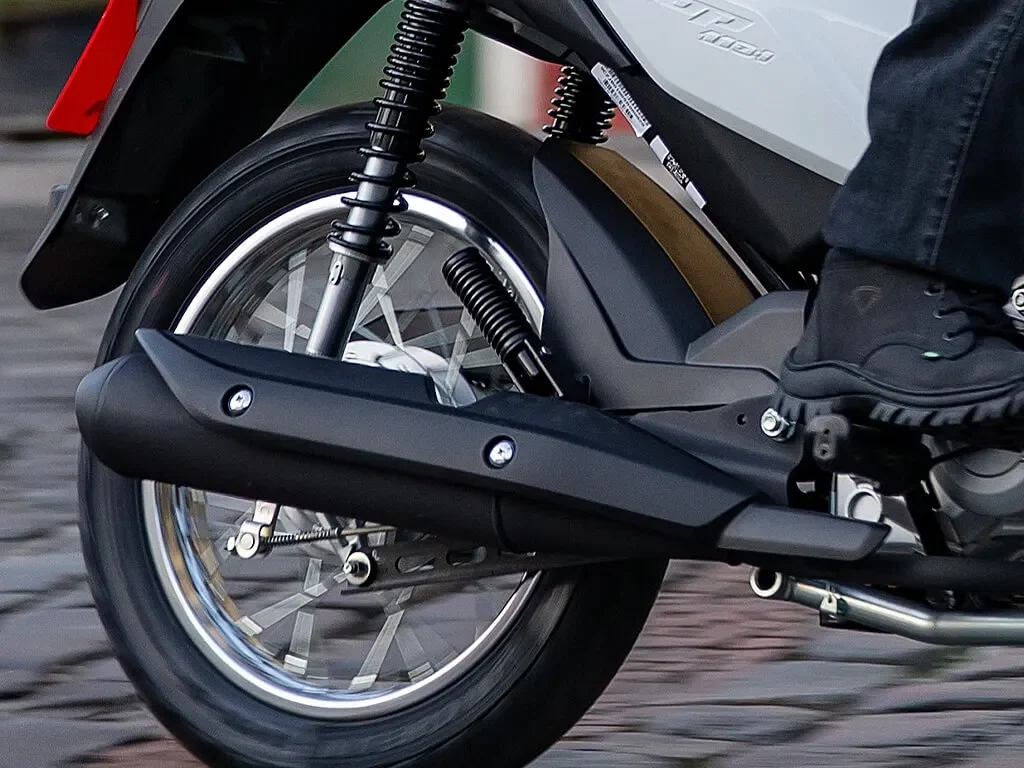 O escapamento também passou por mudanças, agora com novo desenho e catalisador próximo a curva de saída, conta com protetor alongado e também na cor preta, garantindo uma pilotagem mais segura.